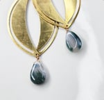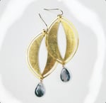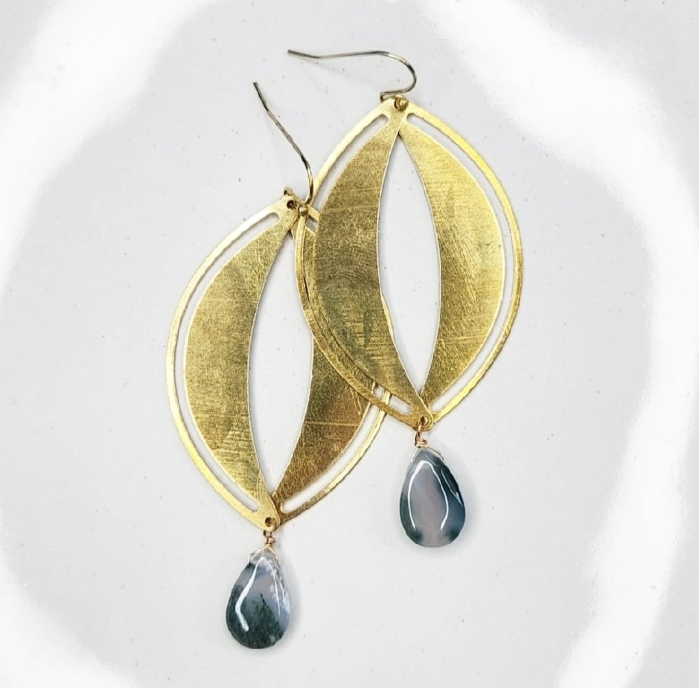 The all brass version measure 2" long, and the pearl and moss agate earrings measure 2.75" long and dangle on French hook ear wires.