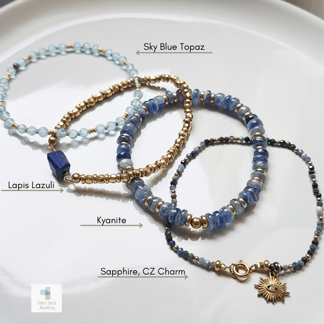 Gorgeous beaded bracelets of natural ocean blue gemstones are meant to be stacked and layered but will still look gorgeous worn separately;